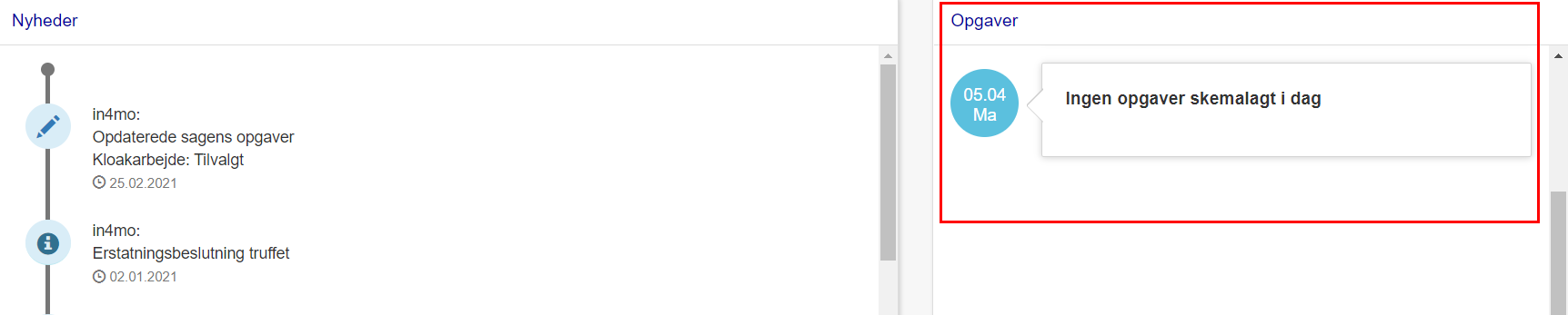 Nye opgaver tilføjet til sag – En post i nyhedsfeeden om at nye opgaver blev tilføjet.