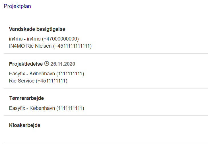 Ved at klikke på en opgave kan kunden se beskrivelsen af opgaven. Hvis der er tre sorte prikker ved siden af opgavens navn, betyder det, at der er tilføjet noget til sags multimedie. Multimedia fra besigtigelser er ikke vist i projektplanen.