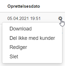 Det er også muligt at fjerne delte dokumenter fra kundesiden. Dette gøres ved at klikke på tandhjulet til højre for det dokument, du vil fjerne, og derefter klikke på ‘Del ikke med kunder’. Som det var tilfældet, når du tilføjede et dokument til kundesiden, bliver du bedt om at bekræfte, at du vil fjerne dokumentet fra kundesiden. Bekræft, og dokumentet vil ikke længere være tilgængeligt på kundesiden.