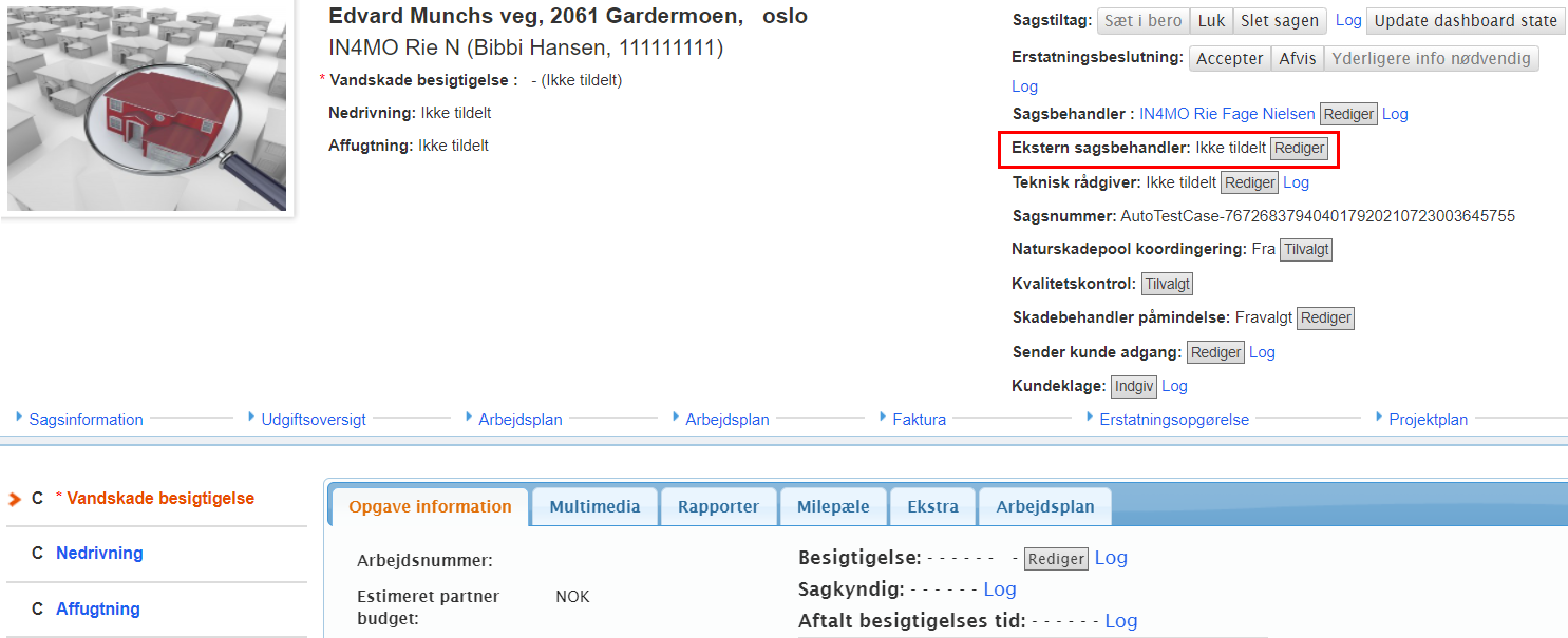 Med hensyn til normale opgaver er leverandøren ansvarlig for at tildele den ansvarlige bruger. Kun brugere, der er markeret for rollen af forsikringsselskabet, kan vælges som ekstern sagsbehandler.
