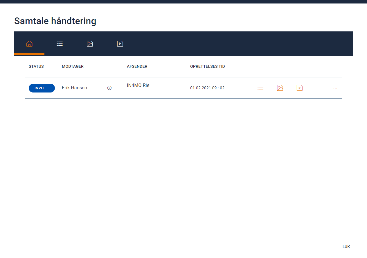 Når du er klar, skal du trykke på knappen SEND for at sende invitationen. I visningen Opkaldsadministration vil der nu være en ny linje med status INVITERET.
