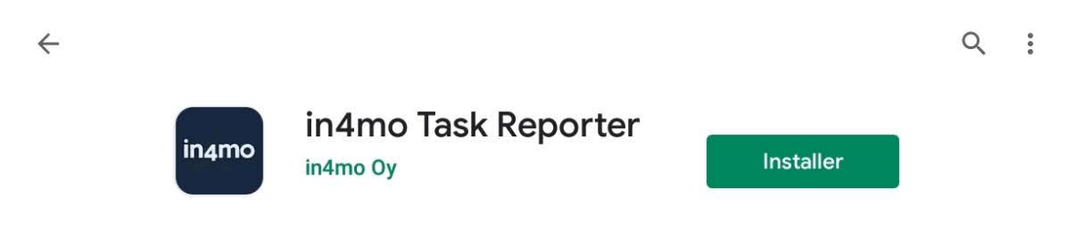 Skriv ‘in4mo’ eller ‘in4mo Task Reporter’ for at finde applikationen. Tryk på den rigtige applikation (in4mo Task Reporter) for at åbne appens side i Play Butik: