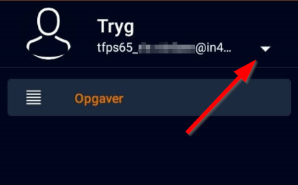 Når du har tilføjet mere end en konto til appen, vil en konto altid være aktiv (den aktive konto vises i øverste venstre hjørne, når du åbner menuen fra opgavelisten). Opgavelisten viser de opgaver, der er tildelt denne konto. For at skifte til en anden konto skal du åbne menuen fra opgavelisten og trykke på den aktive konto i øverste venstre hjørne for at åbne kontovisningen.Du vil nu se alle konti, der er føjet til appen. For at skifte konto skal du blot trykke på den konto, du vil åbne. Opgavelisten viser derefter opgaverne for denne konto.
