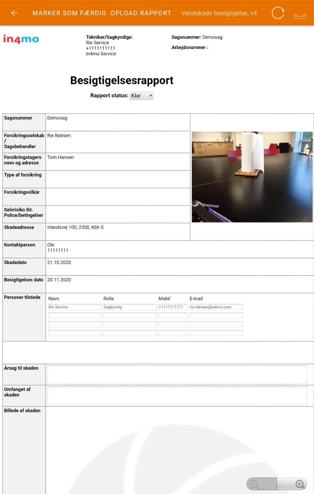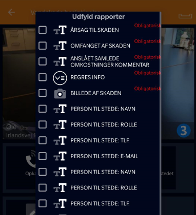 På en telefon kan du dog ikke åbne denne rapportvisning. I stedet udfylder du de enkelte rapportelementer og afslutter typisk rapporten senere fra en computer.