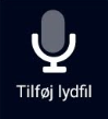 Ved at trykke på dette ikon begynder appen at optage lyd. Du kan stoppe optagelsen ved at trykke på stop-symbolet og tilføje tekst til optagelsen, hvis du ønsker det. Når optagelsen er færdig, kan du enten sende den til portalen, hvor den findes under Multimedia, eller du kan kassere optagelsen ved at gå tilbage. Du har også mulighed for at kassere optagelsen og starte en ny ved at trykke på den røde cirkel, eller du kan lytte til optagelsen, før du gør andet ved at trykke på afspilningssymbolet.