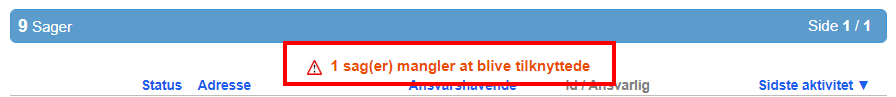 Når der er akut sager i portalen, vil brugere fra forsikringsselskabet i sagslisten og i kontrolpanelet se meddelelsen X sag(er) skal tilknyttes. Når du klikker på denne tekst, tilføjes et filter kaldet Akut sag til det aktuelle filtervalg under kategorien Avancerede indstillinger. Når dette filter er aktiveret, vises kun akut sager i sagslisten.