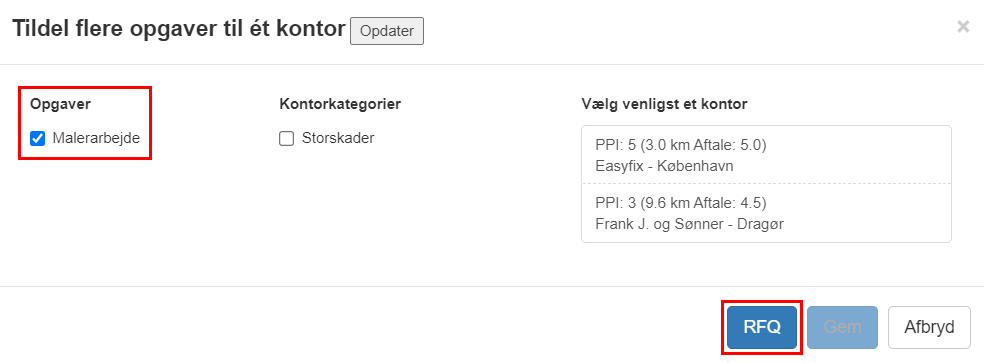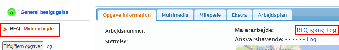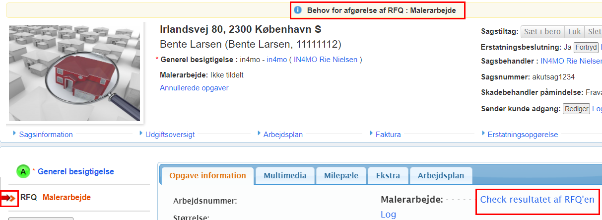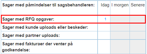 Du vil blive returneret til sagen, hvor den eller de valgte opgaver nu markeres med status RFQ.