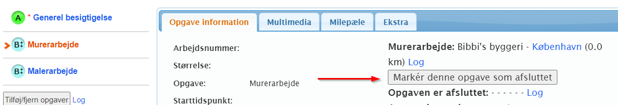 Når en forsikringsselskabsbruger åbner opgaven, der er tildelt en ikke-in4mo-partner, vil de se en knap kaldet Marker denne opgave som afsluttet under Opgave information. Ved at klikke på denne knap flytter opgaven fra status B ++ til 4 og kan derefter godkendes eller afvises som afsluttet på samme måde som enhver anden opgave. Hvis forsikringsselskabet modtager billeder fra partneren om arbejdets forløb, kan forsikringsselskabet føje disse til opgavens multimedia.