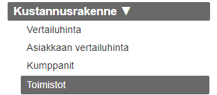 Tietylle toimistolle määritellyt hinnat saa näkyviin, klikkaamalla kyseistä toimistoa.