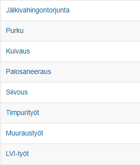 Huomaa, että asiakkaan vertailuhinnan osion saatavuus riippuu portaalin asetuksista. Mikäli tämä osio ei ole saatavilla, sarakkeen Asiakkaan oma työ hinnat, perustuvat kumppanihintoihin. Mikäli tehtävälle ei ole osoitettu kumppania, asiakkaan omat työhinnat perustuvat pääkartoituksen suorittavan kumppanin hintoihin. Mikäli kartoitusta suorittavalle yritykselle ei ole määritelty hintoja kyseisille työtehtäville, hinnat perustuvat vertailuhintoihin. Mikäli tehtävät on osoitettu muulle kumppanille kuin kartoitusta suorittavalle yritykselle, perustuvat asiakkaan omat työt näiden osoitettujen kumppanien hintoihin.