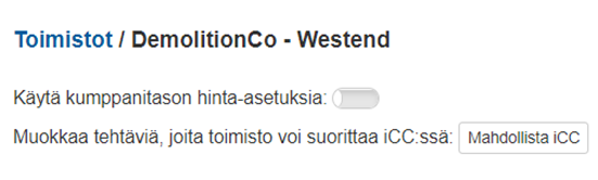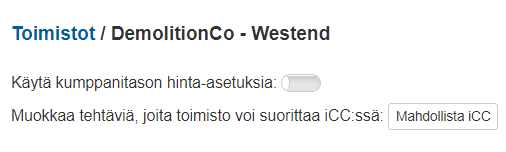 • Muokkaa tehtäviä, joita toimisto voi suorittaa iCC:ssä