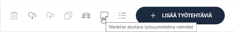 Työsuunnitelman voi merkitä valmiiksi klikkaamalla yläpalkin kuvaketta.