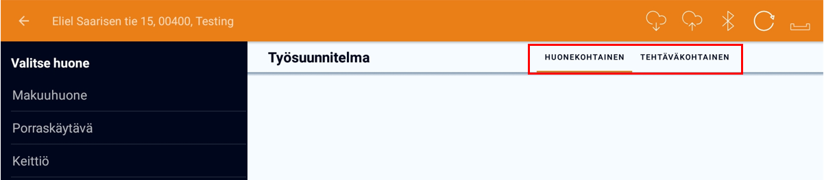 Työsuunnitelmassa on valittavana kaksi näkymää; Huone- tai Tehtävänäkymä. Oletuksena järjestelmä näyttää työsuunnitelman huonenäkymän rakenteen mukaisesti mutta sitä on mahdollista muuttaa missä tahansa vaiheessa, painamalla työsuunnitelman oikeassa yläkulmassa olevaa painiketta. On myös mahdollista muuttaa oletusnäkymää sovelluksen asetuksissa. Näkymä ei vaikuta käytettävissä oleviin työtehtäviin, ainoastaan siihen, miten työtehtävälistassa navigoidaan.
