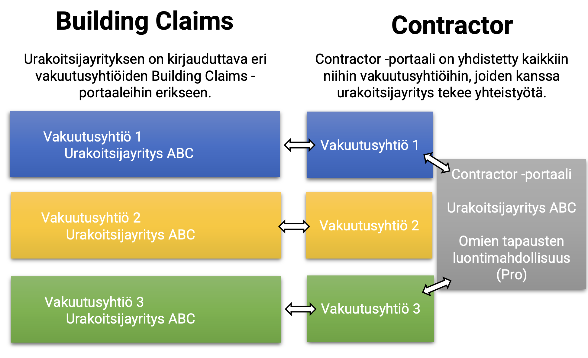 Kun pääsy in4mo Contractor -portaaliin on luotu, tulee tätä käyttää erillisten vakuutusyhtiöportaaleiden sijaan.