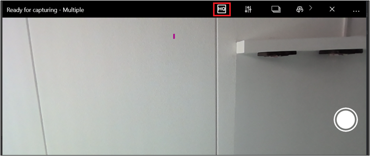 Kun valokuvia otetaan Task Reporter -mobiilisovelluksella, kameranäkymässä näkyy [HQ]-kuvake, jota voi painaa, kun tarvitaan korkealaatuisia kuvia. Oletusarvoisesti tämä vaihtoehto on pois käytöstä ja kuvat tallennetaan oletuslaadulla, mutta kun kuvaketta on painettu ja HQ-ominaisuus on kytketty päälle, se pysyy päällä koko kameran käytön ajan. Kun HQ-ominaisuus on kytketty päälle, kuva otetaan laitteen kameran korkeimmalla kuvanlaadulla.