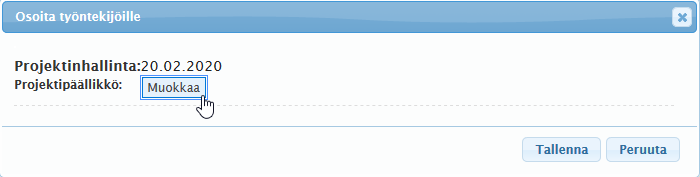 HUOM! Projektihallinnantehtävän aloitusaika on automaattisesti se aika, kun tehtävä osoitetaan kumppanitoimistolle.