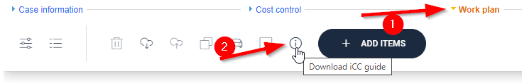 You find the iCC principles document in a web portal by opening the Work plan in a case, and then by clicking the info icon (see illustration below).