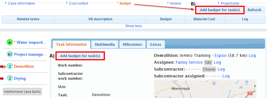 - By going to Task information tab of a task and choose Add budget to task(s)