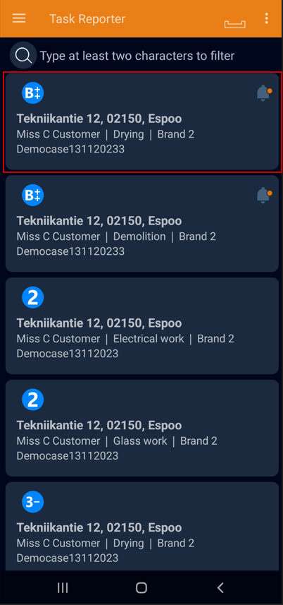 When the sent budget has been approved by the insurance company for the craftsman task, the assigned employee will see the task in the mobile application task list with status
