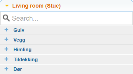 It is possible to search for work items by pressing the magnifying glass. The search function is accessible after you have selected which room there should be searched under.