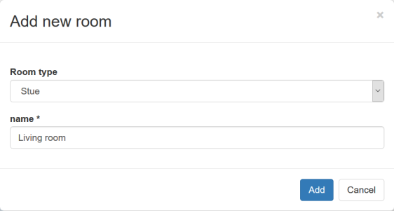 It is possible to add rooms to the case. At the bottom of the list on the left side you find this button + Add new room. When clicking this, a small window will open which lets you add a new room. You must select a room type and fill out a name for the new room.