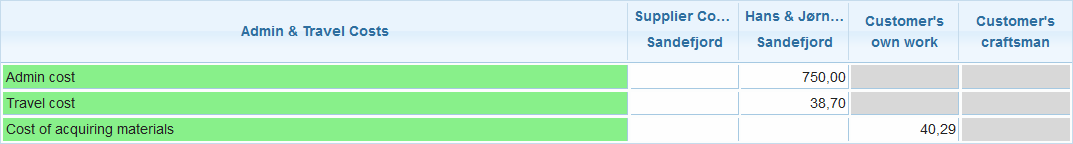 4. Admin cost is in this example based on the rule that first task gives 200 NOK and each following task gives 100 NOK in compensation. Easyfix has four tasks assigned (Project management, inspection, Demolition and Carpentry), and thus is compensated with 500 NOK.