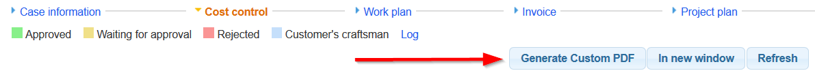 The Cost control tab is where you can follow the costs in a case, as well as having the opportunity to send work items for approval or to approve work items which have been sent for approval.