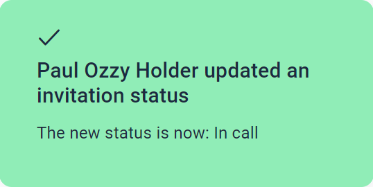 When the contact person opens the invitation, they have received and clicks the link, the status for the case will go from INVITED to IN CALL. There will also be a notification at the bottom right side of the screen informing that the invited person has opened the link. This notification disappears automatically after a few seconds.