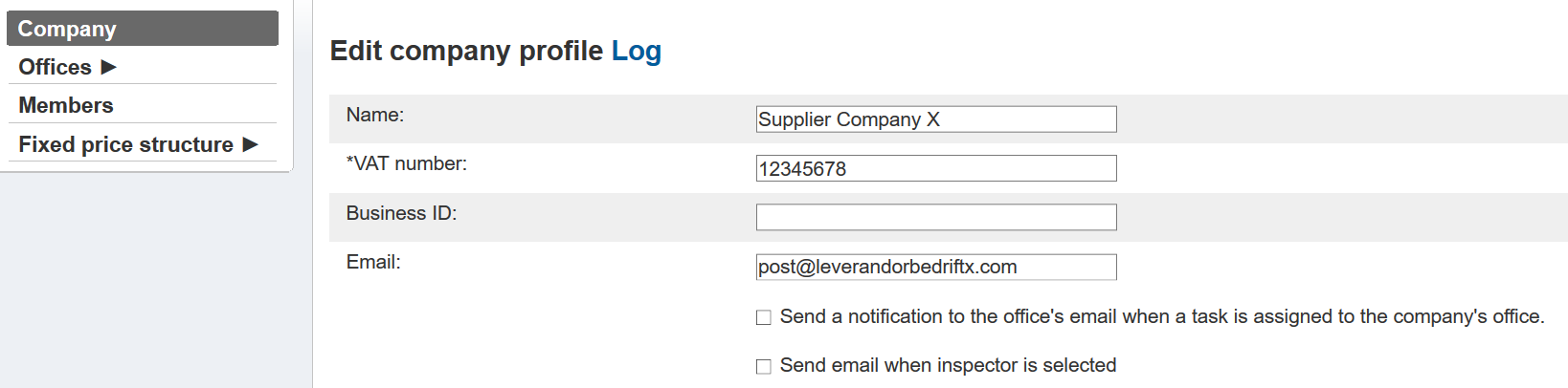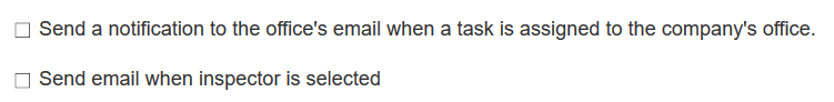 If the former is activated, an email notification will be sent to the office email address of an office whenever this office is assigned a new task. The latter notification is sent to the office email address whenever an inspector has been assigned to an inspection task assigned to the office. As previously mentioned, these settings are universal, meaning that whether they are activated or not applies to all offices.