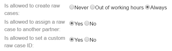 It is also possible to give partners the right to assign raw cases to other partners and to define the case ID for the raw cases. These additional rights can only be given if the enhanced raw case functionality is activated in the portal.