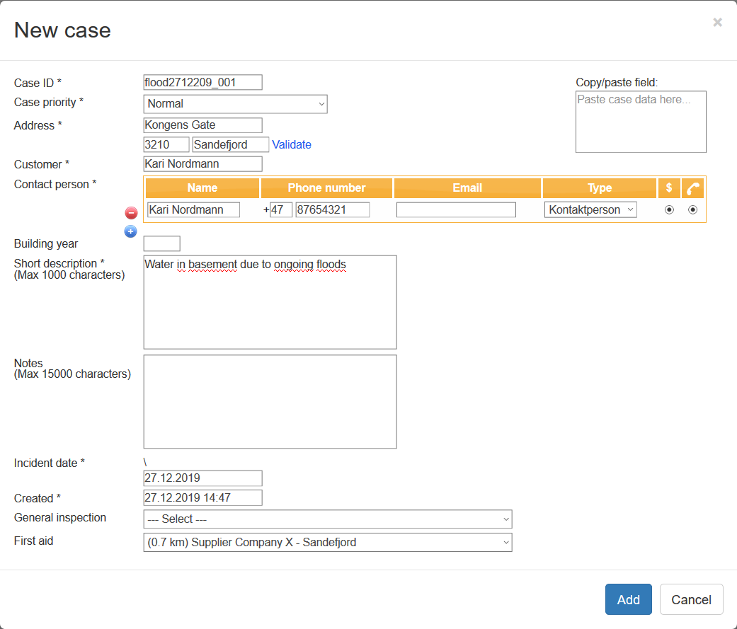 Fields that are mandatory to fill out are marked with an asterisk (*) icon, other fields are optional. Once you are ready, click Add to add the case.