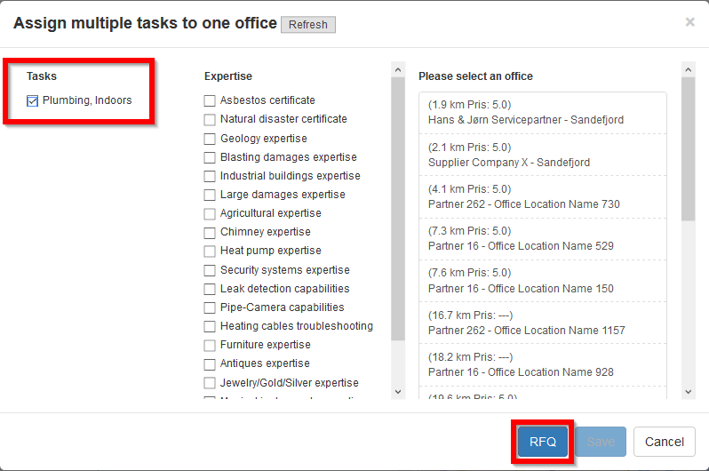 When the tasks have been added, click on Assign partner (requires role access to add and remove tasks). The usual window for assigning tasks to companies will open.