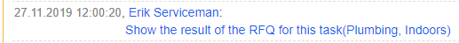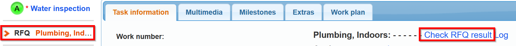 To see the result of the RFQ, you must first select the task in question. Under Task information it will now say Check RFQ result. Click on the blue text to open the result of the RFQ.
