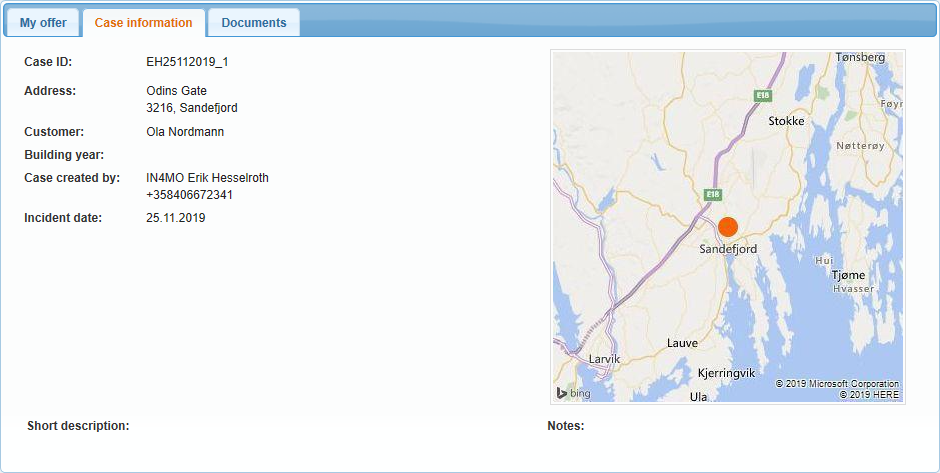 Under Case information you will find basic information about the case, such as the damage site address, as well as a short description and notes from the case.