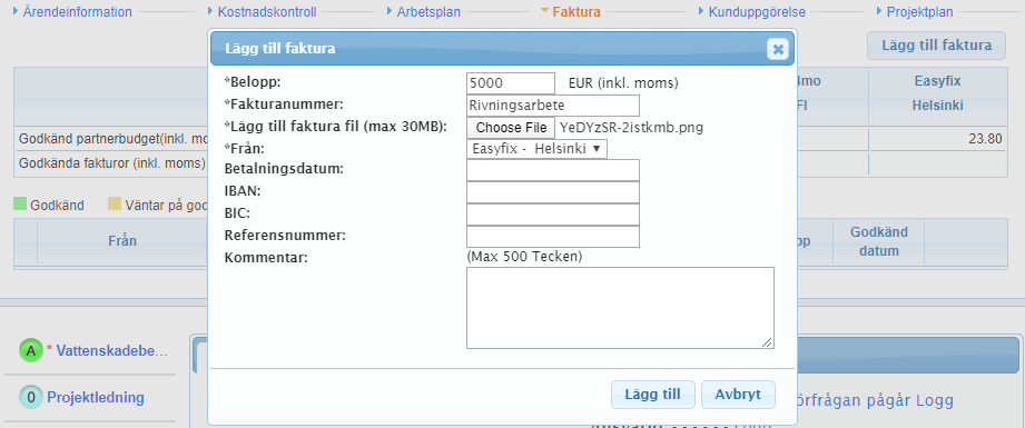 Det är också möjligt för försäkringsbolagets användare att bifoga fakturor på ert företags vägnar. Även då är fakturorna för ert företags uppgifter synliga för er här.